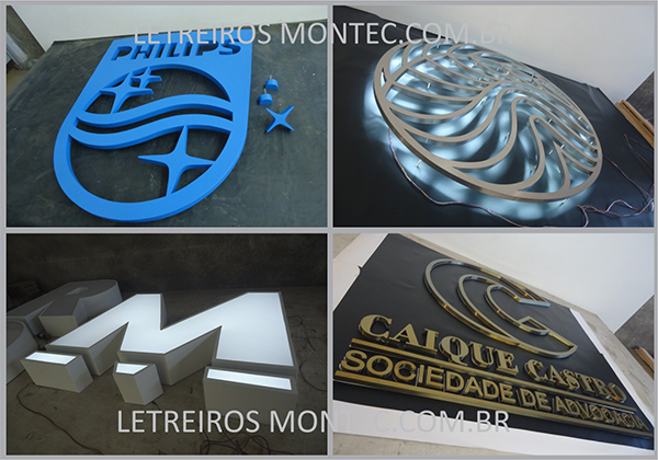 O resultado é elegante e sofisticado, criando estética moderna e refinada na identidade visual da empresa. Nas letras caixas alto-relevo podem ser aplicados adesivos recortados ou impressos frontalmente para destacar detalhes dos logotipos ou até letras sobrepostas em logotipos alto-relevo. Existe uma grande variedade de materiais usados na fabricação de letra alto-relevo.