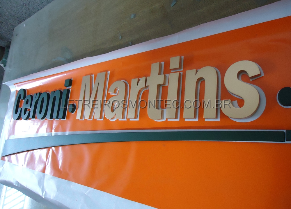 Esse tipo de letreiro confeccionado em material de cores de fábrica primárias de catálogo torna o processo de produção mais rápido e sua instalação é feita com uso de gabarito vazado de ps, assim garantindo que as peças fiquem bem alinhadas.
