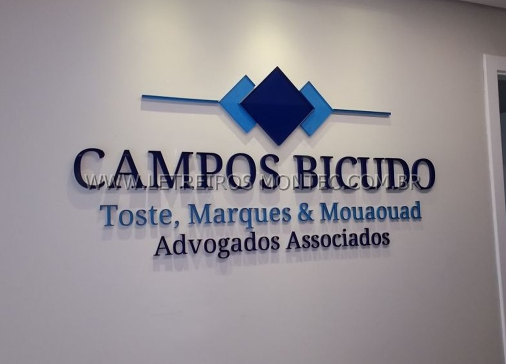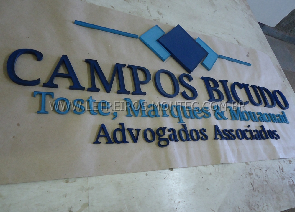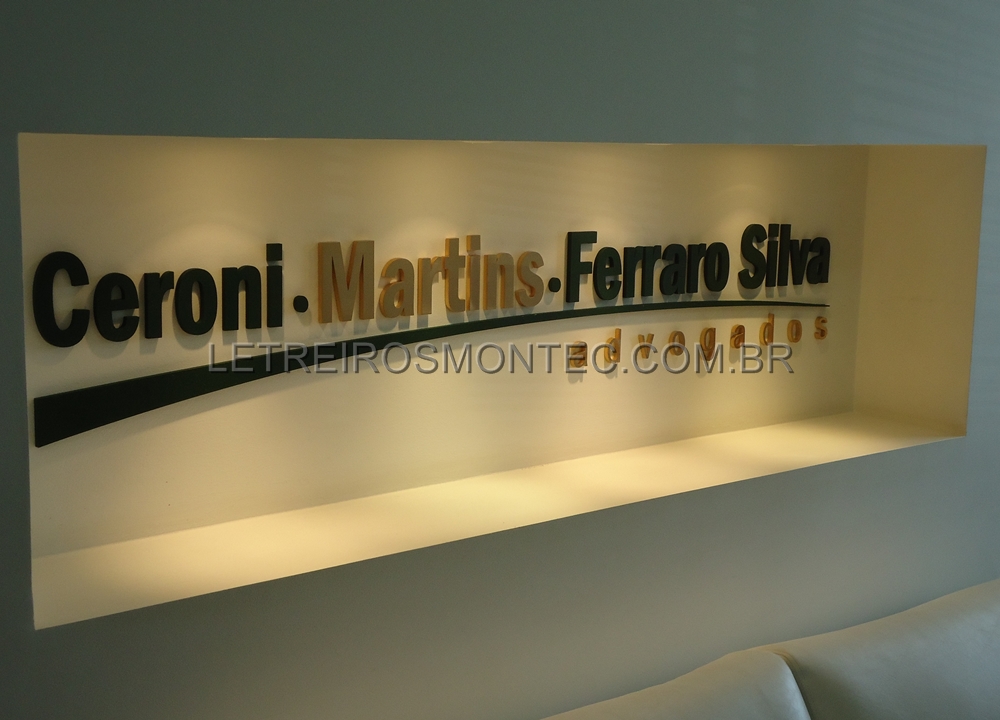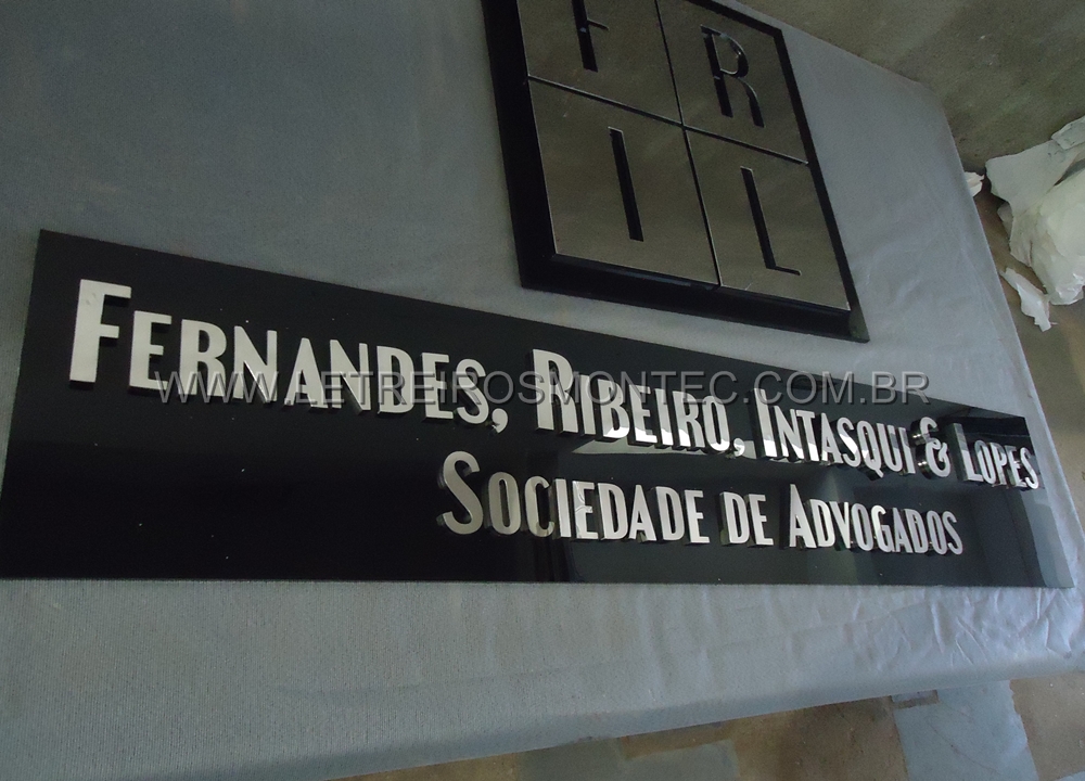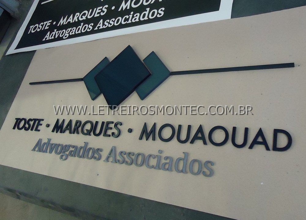 Fabricamos e instalamos letreiro e logotipo de escritório de advocacia de alto padrão de acabamento.