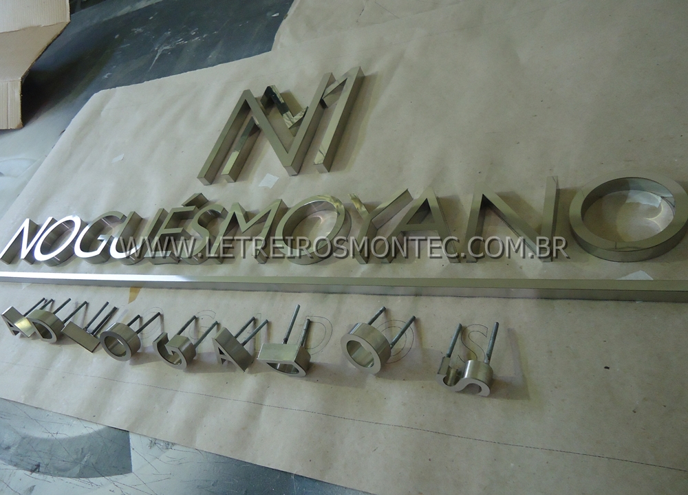 O letreiro fabricado neste material o acabamento do próprio metal, que não pode ser imitado por pintura ou outro tratamento em termos de beleza e impacto visual.