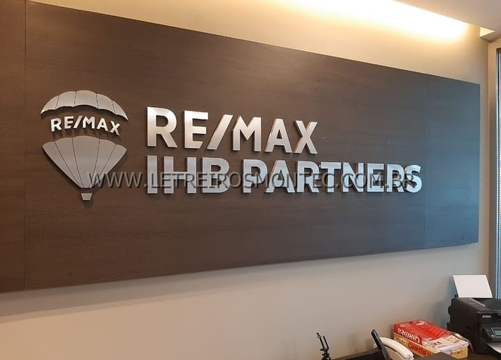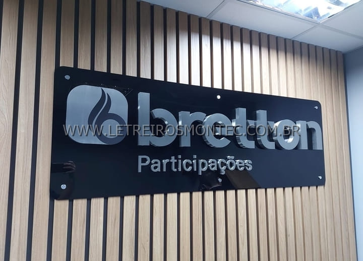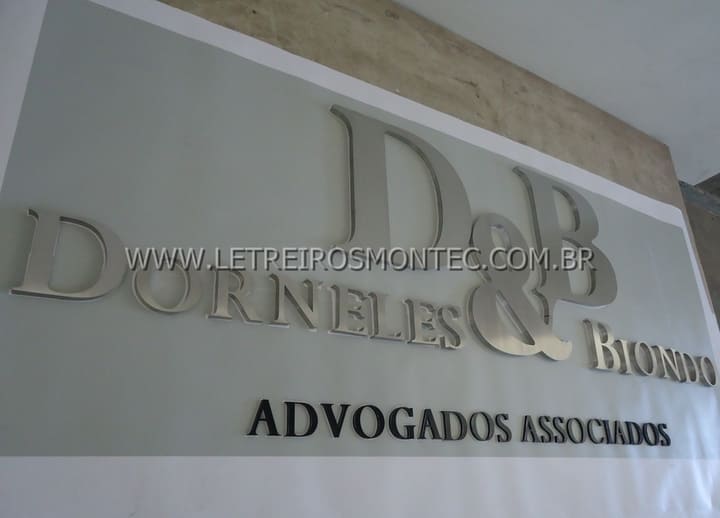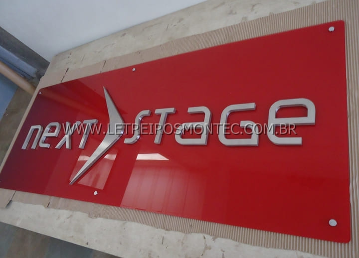 Produzido em material nobre, não refletivo e de baixa manutenção de limpeza é indicado para uso em escritórios, recepção de empresas e fachadas podendo ser fixado via pinos internos ou uso de fita dupla face, é fabricado em diversos tamanhos e formatos e textos e logos em formatos especiais conforme a arte do cliente.