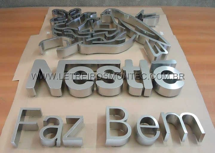 Além disso, pode receber adesivo impresso frontal para destacar detalhes do logotipo, e dependendo do caso pode ser aplicado iluminação via módulos de led internamente tornando letreiro de inox retro iluminado ou letreiro com iluminação indireta, também consultado por letreiro alto-relevo inox ou letreiro 3d de inox e também nos procuram por alumínio por desconhecerem o material.