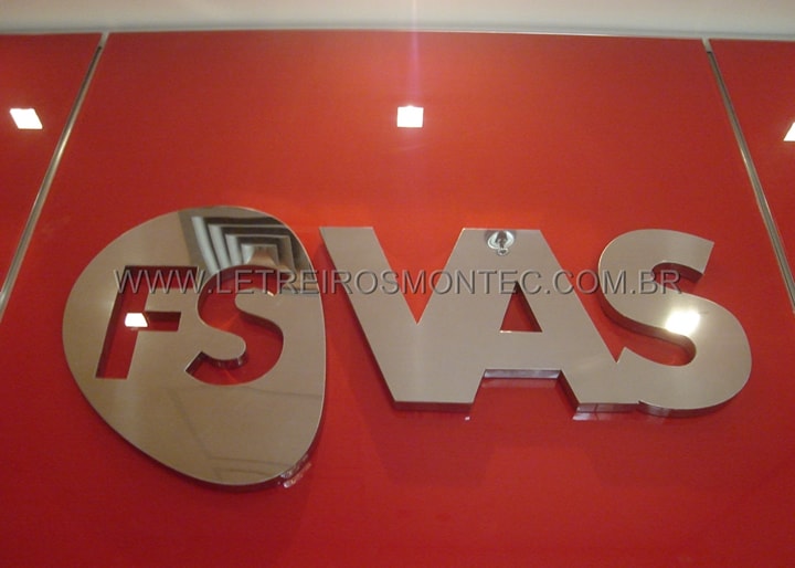 Usado em diversos seguimentos como escritórios, stands, recepção de empresa, lojas de shopping entre outros conseguindo resultado de extrema beleza e qualidade, o letreiro de aço inox polido pode receber adesivo recortado ou impresso frontal dependendo do logo do cliente e também iluminação indireta por meio de e led para maior destaque.