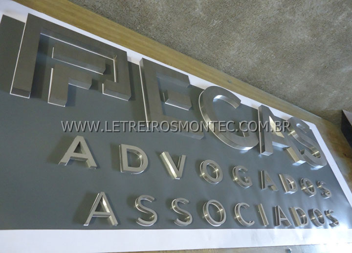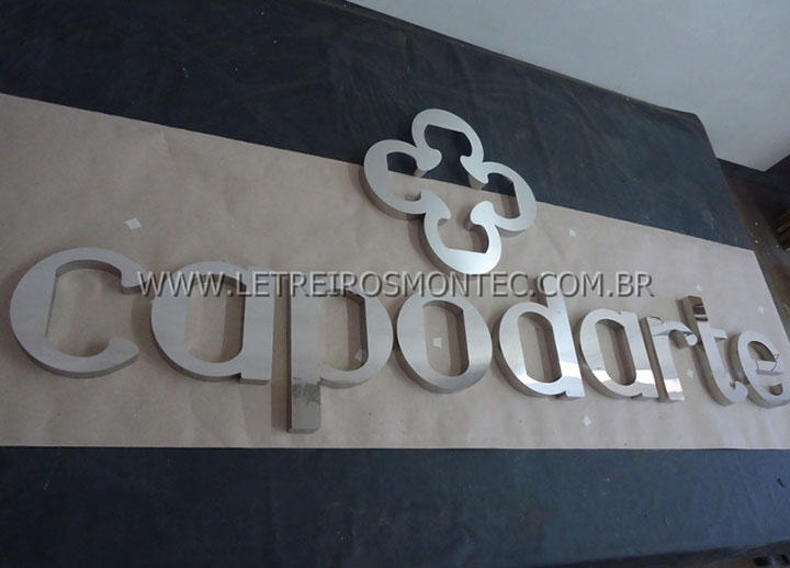 Conhecido no mercado como letreiro de alto-relevo polido brilhante ou letreiro 3d inox brilhante, sendo que clientes procuram como letreiro de alumínio por desconhecerem o material. Nossa empresa tem especialização na fabricação e instalação de letreiros de inox polido com experiência no mercado, temos equipe de profissionais qualificados para entregar ao cliente o melhor produto e estamos sempre acompanhando a tendência do mercado junto as necessidades dos clientes garantindo qualidade de bom serviço.