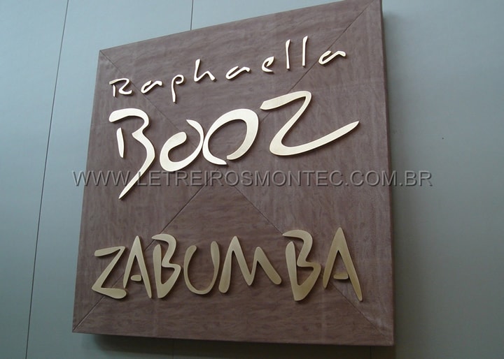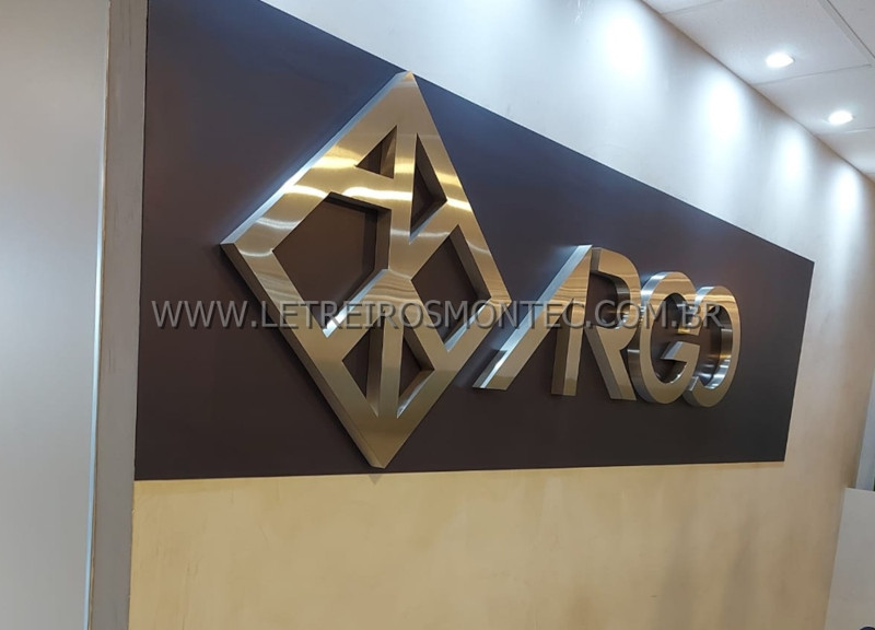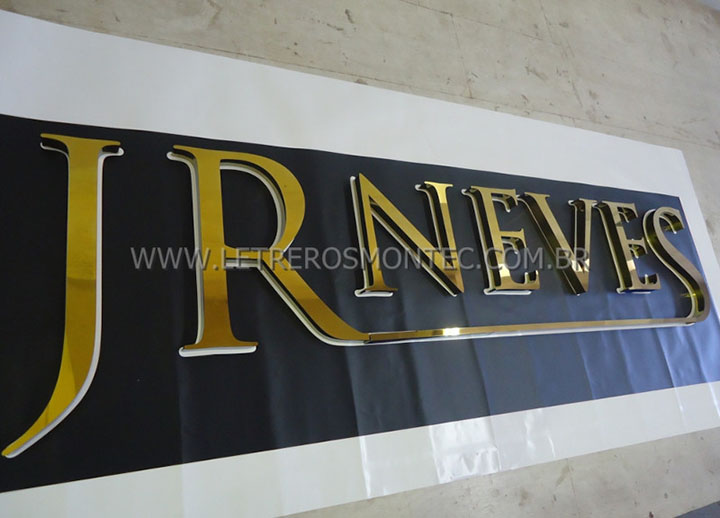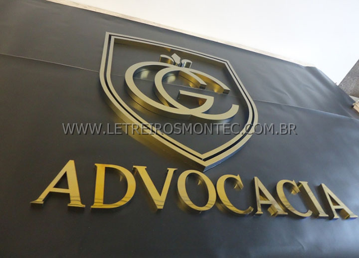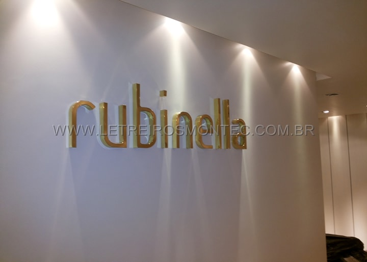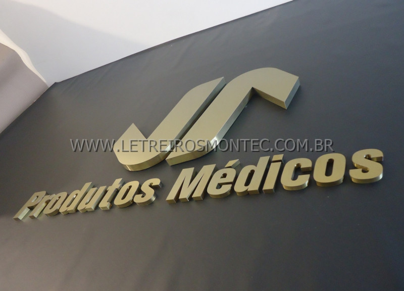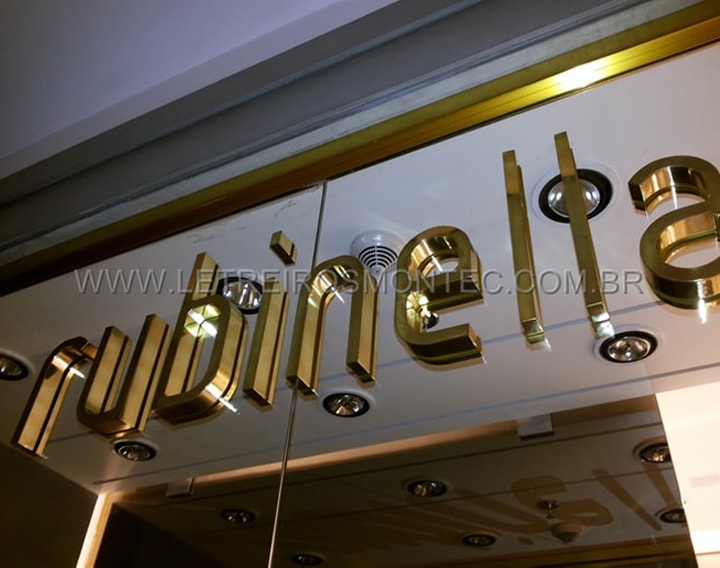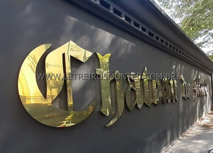 Textos e logos de metal dourado brilhante, polido ou escovado em alto relevo podem ainda receber iluminação indireta via led, descartando-se de forma sensacional no local instalado.