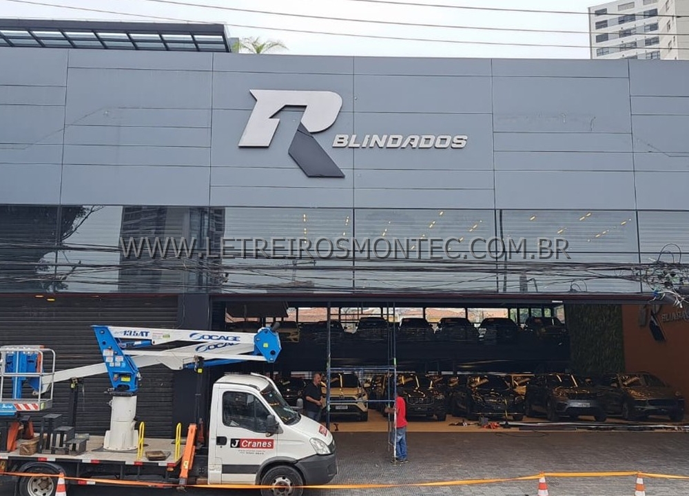 Feito para uso externo, o letreiro luminoso em fachada comercial é fabricado com filete frontal onde fixa o acrílico por dentro das peças e fabricado deste medo fica sendo de fácil manutenção.