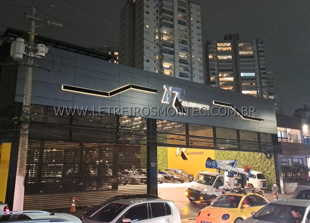 A fachada com letreiro luminoso, promove alta visibilidade e credibilidade na comunicação visual de uma empresa, os letreiros projetam a luminosidade transmitindo uma ótima impressão e aumentando a confiabilidade entre as empresas e clientes.