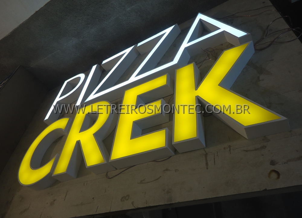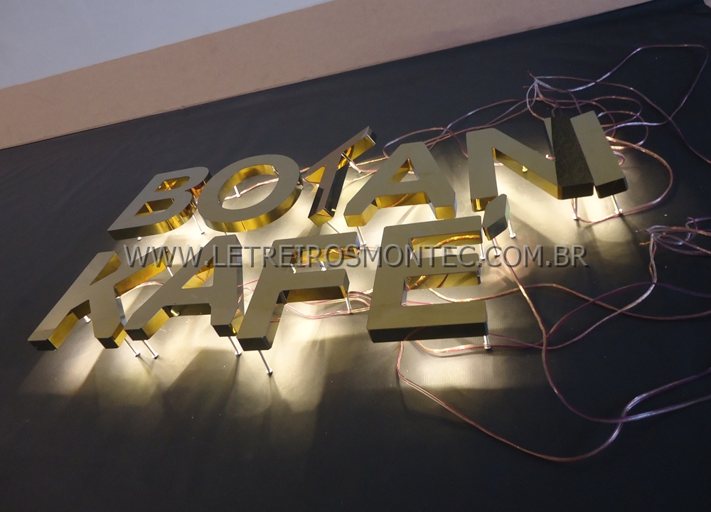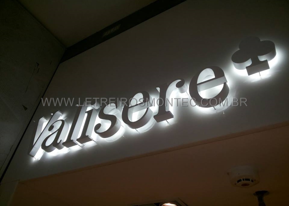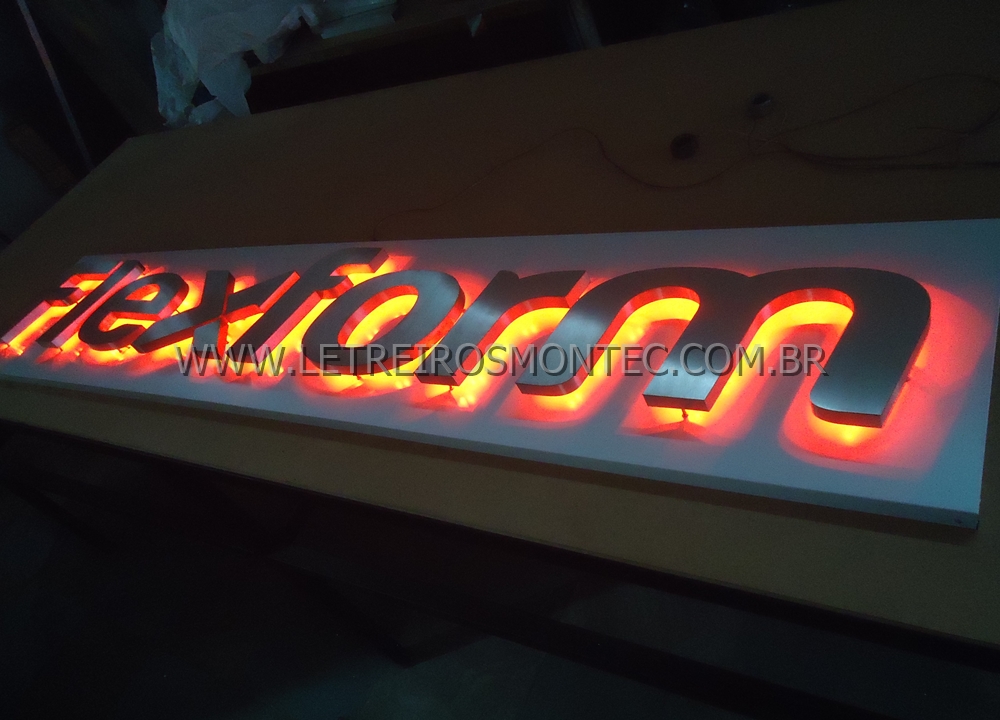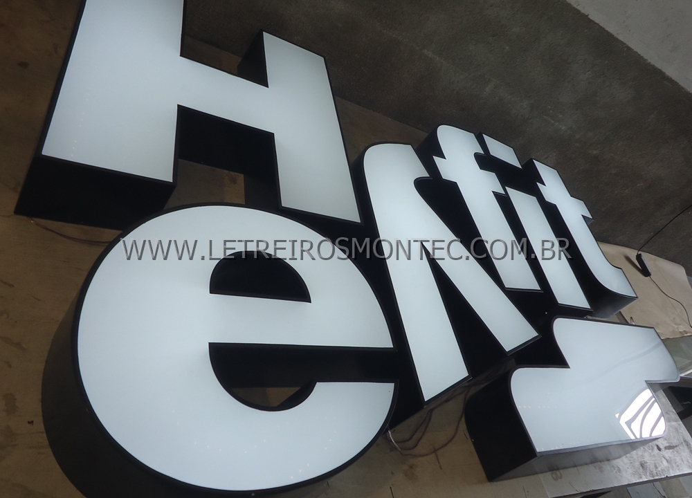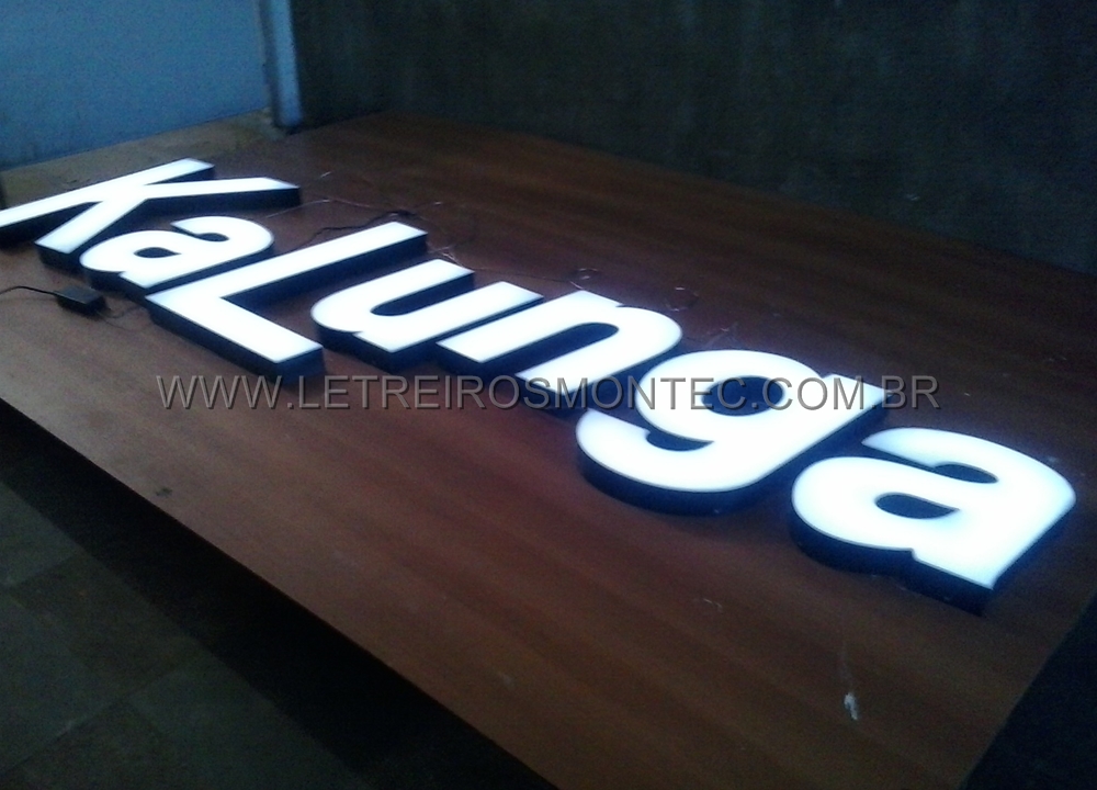 O letreiro luminoso fabricado em metal e frente em acrílico garante alta durabilidade em uso externo, conhecido por letreiro back light possui módulo de led interno e acende a parte frontal iluminando os textos e logos da fachada, fabricados em vários formatos e medidas conforme o projeto pretendido do cliente sendo uma excelente opção para lojas, bares noturnos e restaurantes, pois ele forma um projeto de alto impacto visual atraente e visivelmente, tanto de dia quanto e especialmente à noite e também em fachadas de loja de shopping onde chama muito a atenção dos clientes.